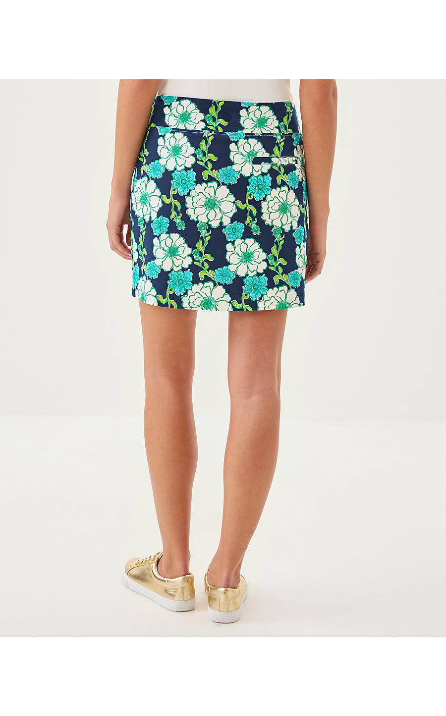 - UPF 50+ Luxletic® stretch woven golf skort with front, back, and undershort pockets.