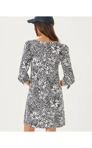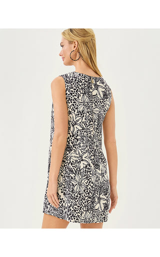 Edita Shift Dress - Onyx Lots To Spot Engineered Woven Shift