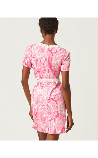 Evita Short Sleeve Stretch Shift Dress - Confetti Pink Rosanna