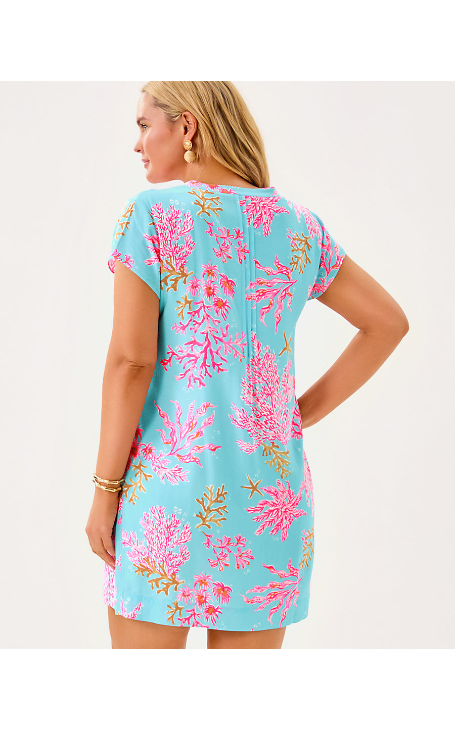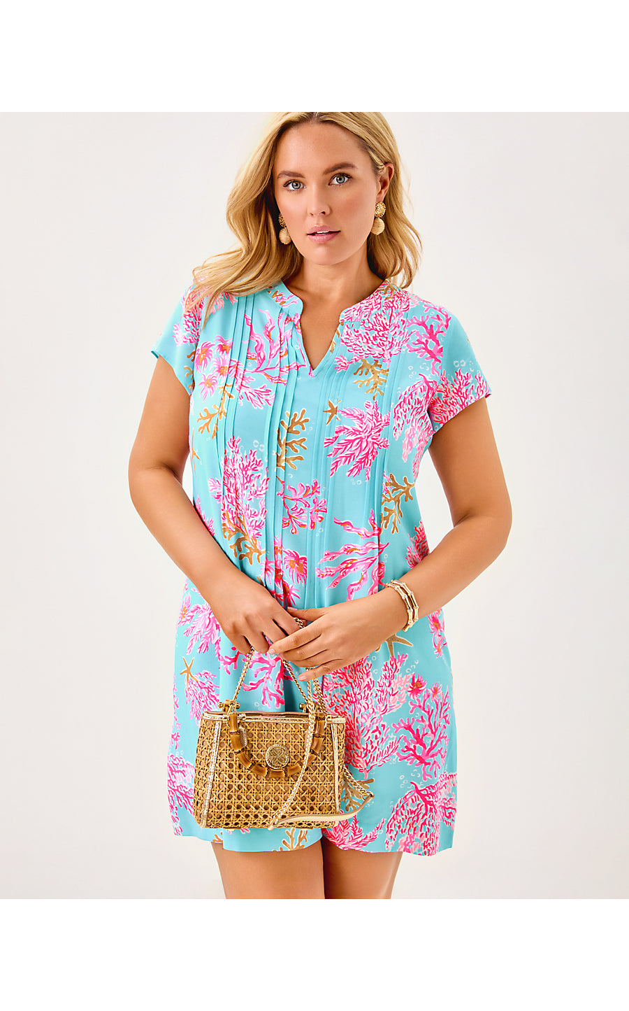 • Easy fit, popover tunic dress with short sleeves, a notch neckline, and pintucks on the front and back.