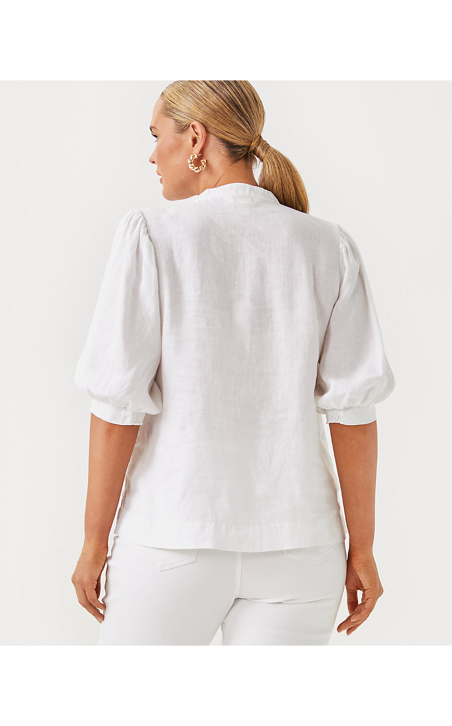 Designed using our breezy Lagoon Linen, the Mialeigh Top is an easy fit style with a collar, half placket, and elbow-length puff sleeves. Made from natural European-grown fibers, it will get softer and more luxurious with every wash and wear.