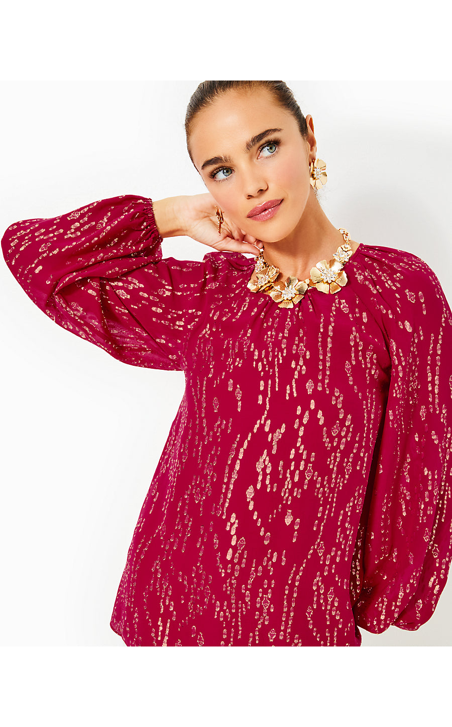Noraleen Silk Top - Malbec Red Fish Clip Chiffon