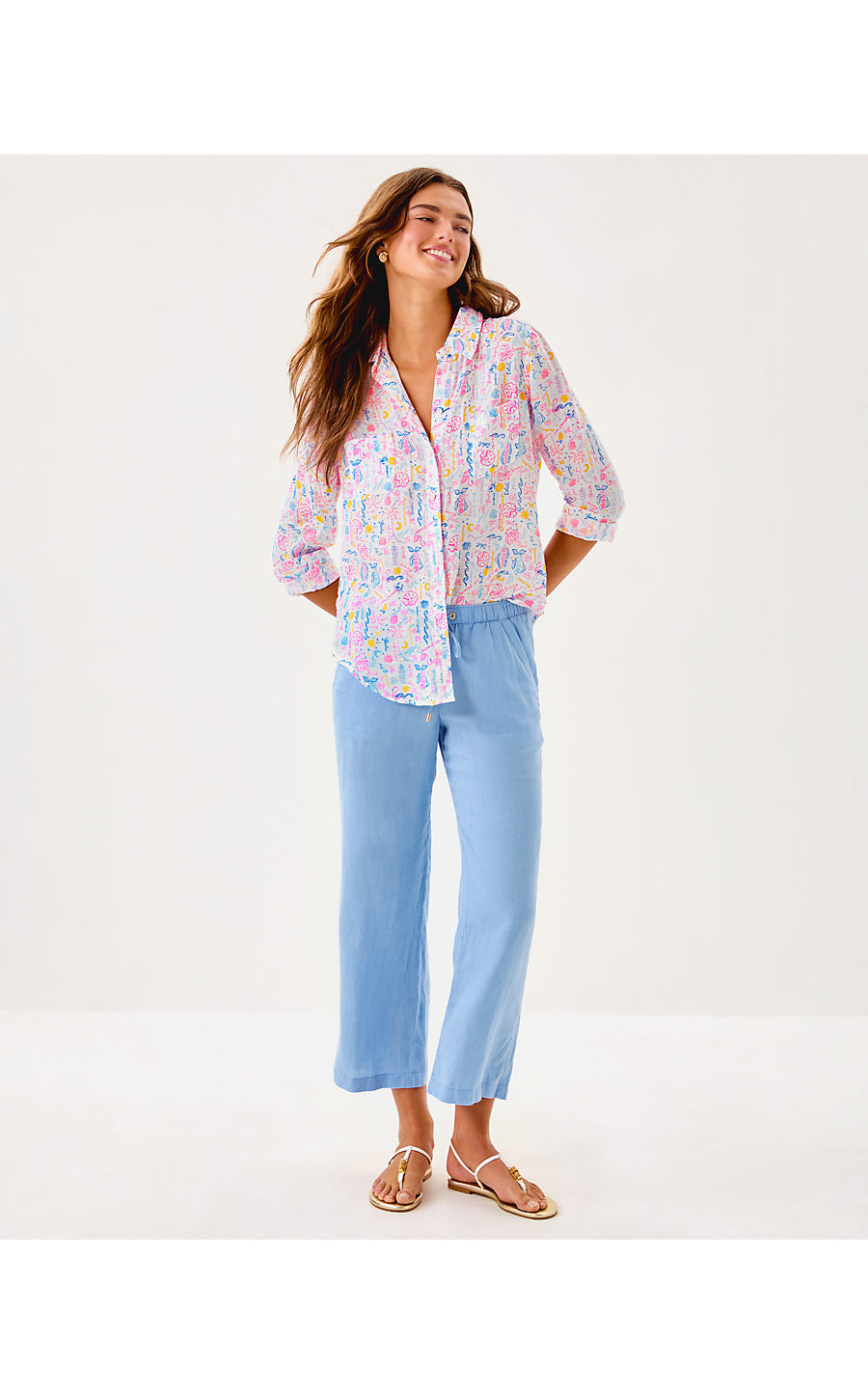 Breezy and exceptionally versatile, our Sea View Linen Button Down Top is an essential addition to your wardrobe. Made from natural European-grown fibers, this style will get softer and more luxurious with every wash and wear.