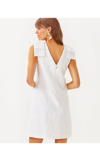 Carmine Stretch Shift Dress - Resort White Pineapple Pucker Jacquard