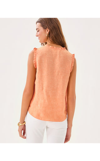 Kavalla Sleeveless Ruffle Top - Papaya X Resort White