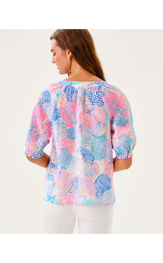 Breah Sleeveless Button Down Top - Rousseau Pink Cool As Shell Overprint