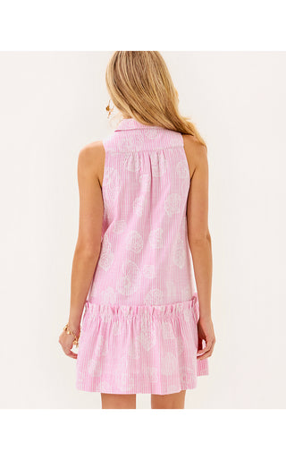 Caylinn Sleeveless Popover Shirtdress - Conch Shell Pink Pigment Printed Secret Stripe