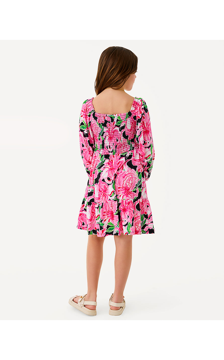 Girls Mini Jilly Long Sleeve Dress- Fit-and-flare, pull-on dress with a shirred skirt flounce, smocked bodice, and long blouson sleeves.