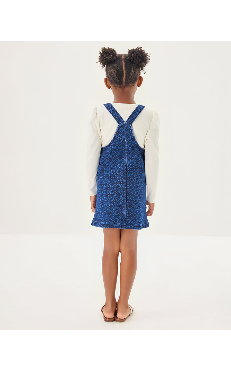 Girls Varney Overall Dress- A-line overall dress with patch pockets and buttons at the straps and waist.