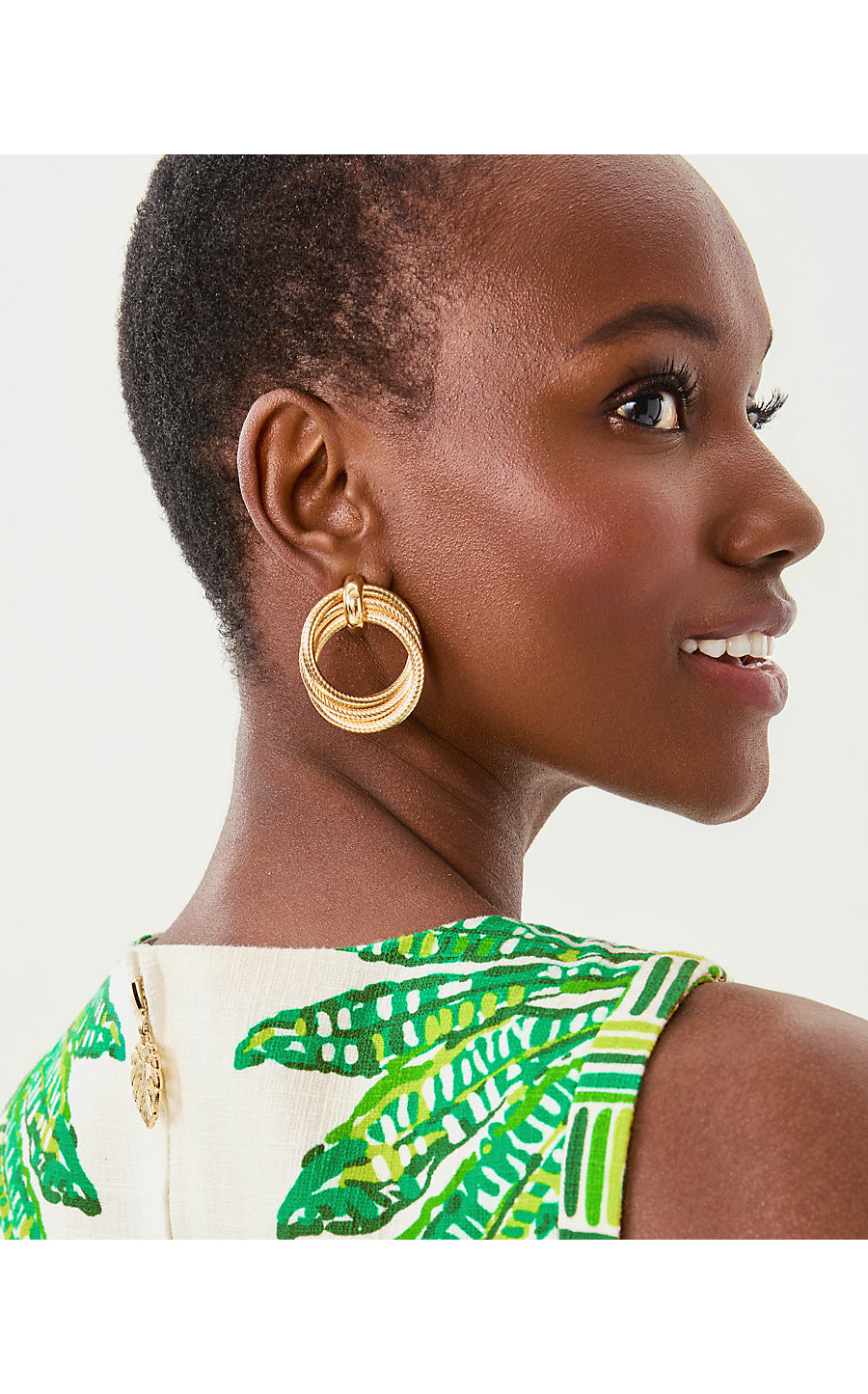Chevs Kiss Doorknocker Earrings- Gold coil doorknocker earrings.