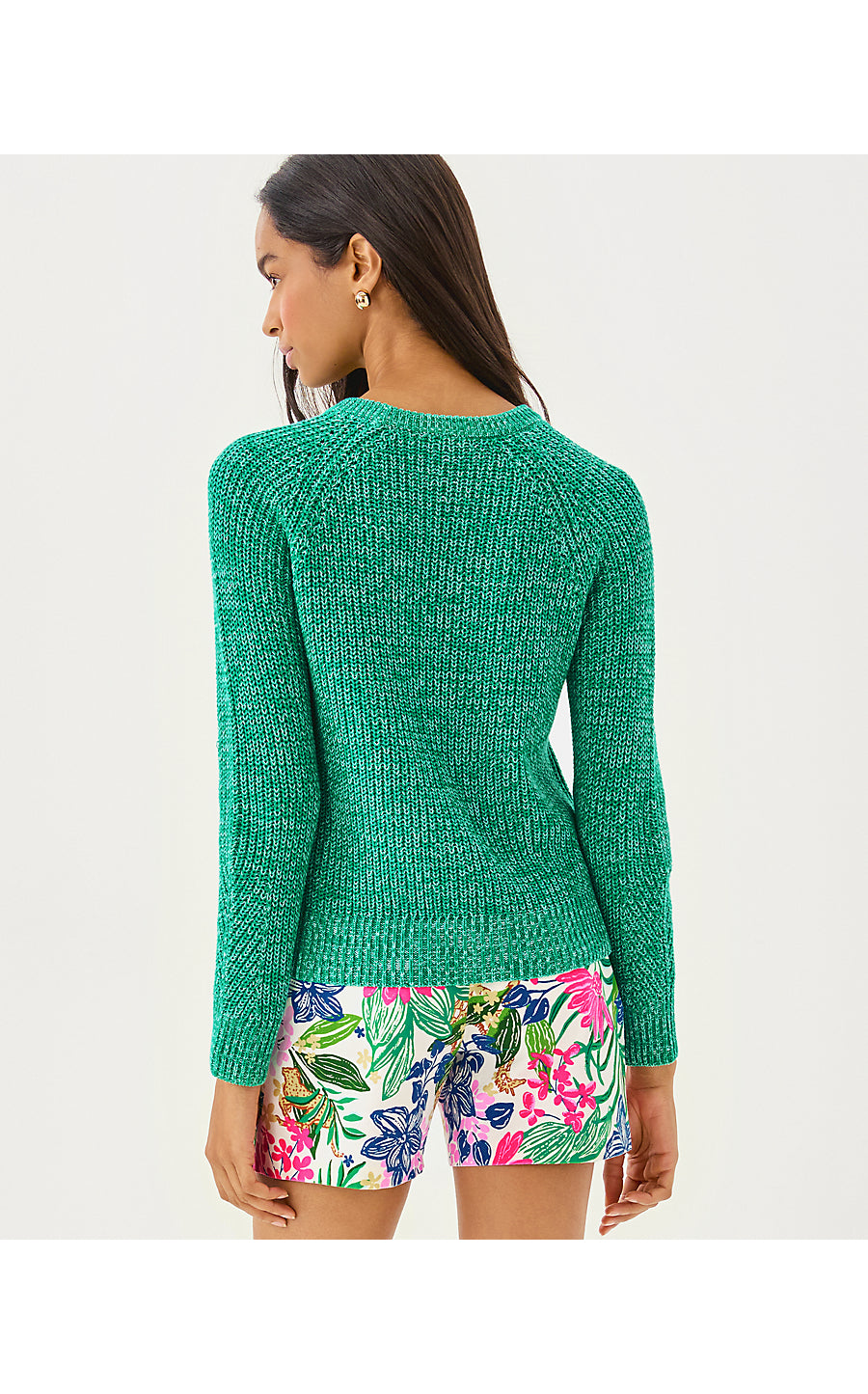 • Easy fit, long sleeve, crew neck sweater with engineered stitches.