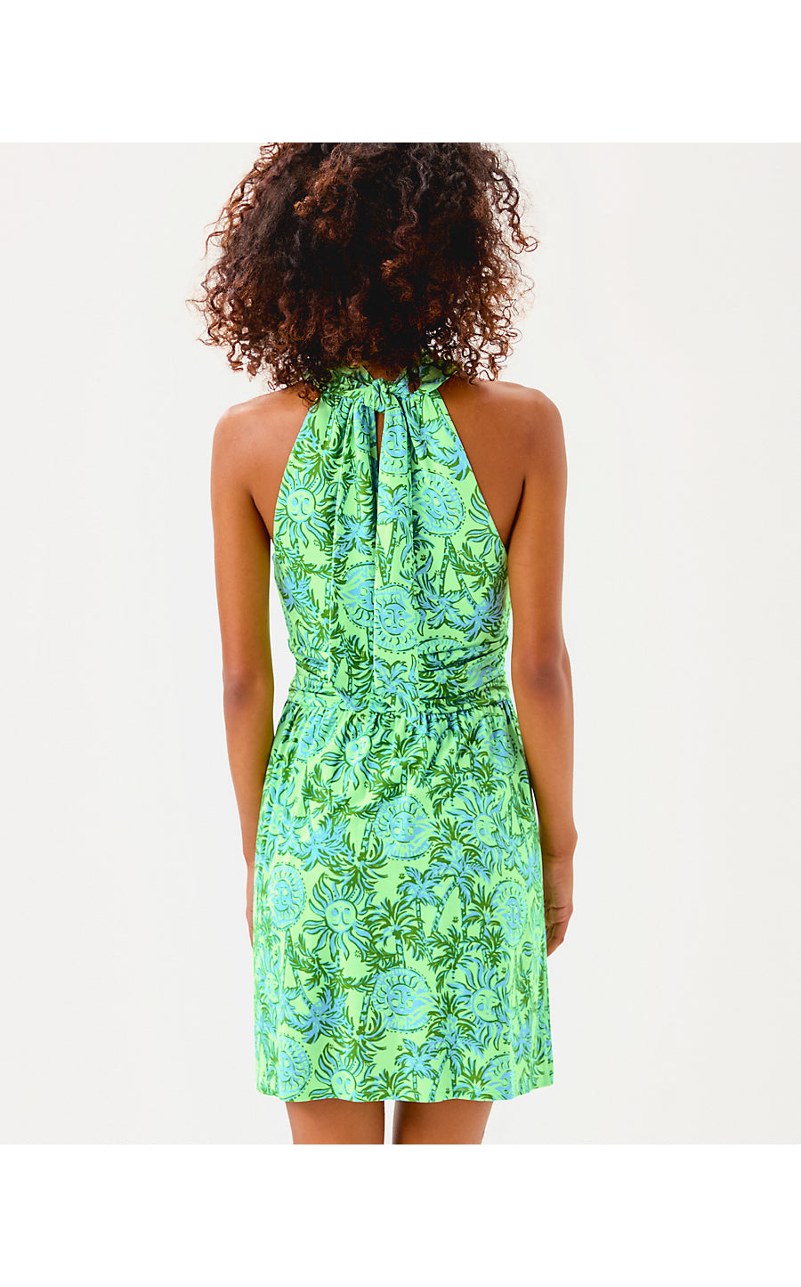 Montecito Skirted Romper- Skirted romper with a halter neckline and ruched waistband.