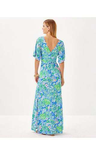 Parigi Boat Neck Maxi Dress - Sunwashed Blue Plumes In Bloom