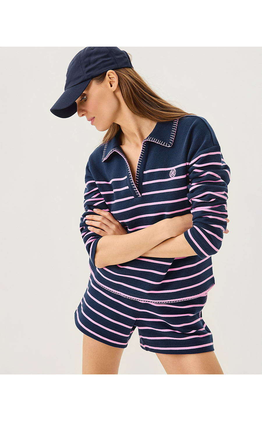 • Mid-rise, pull-on, easy fit short with blanket stitch details.