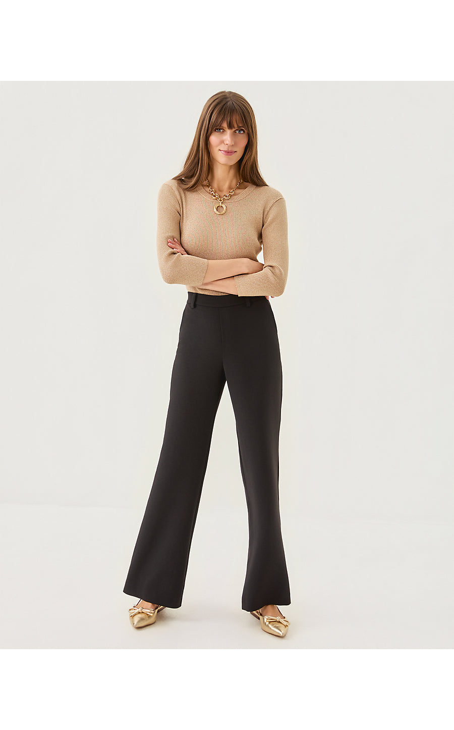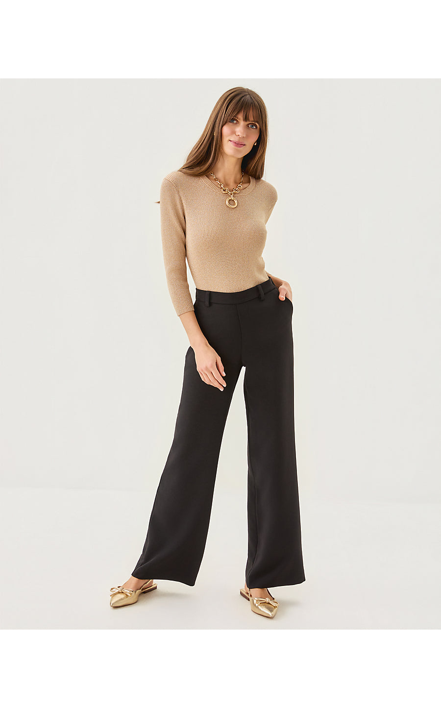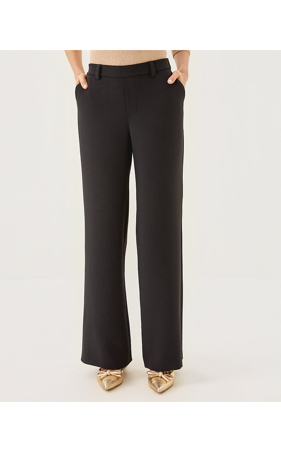 32" Celesta High Rise Palazzo Pant- High rise, pull-on, crepe palazzo pant with a wide fit. Wrinkle resistant.