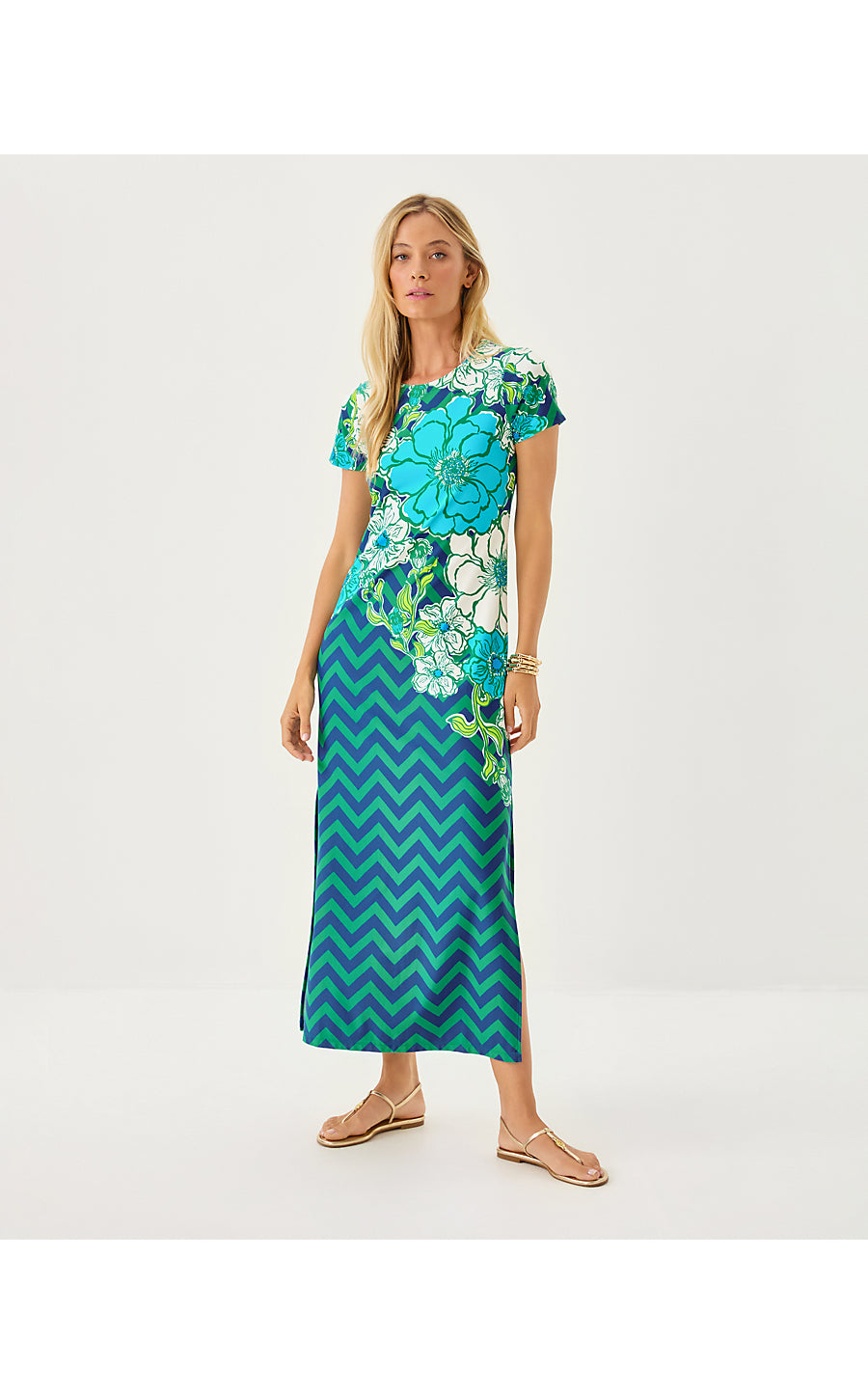 • Straight fit, pullover maxi dress with short sleeves.