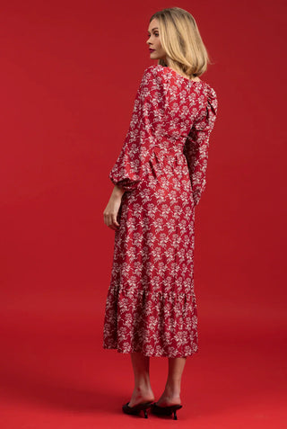 Cornellia Silk Dress - Cranberry Red Leafy Babe Metallic Silk Clip