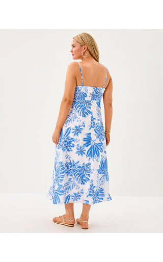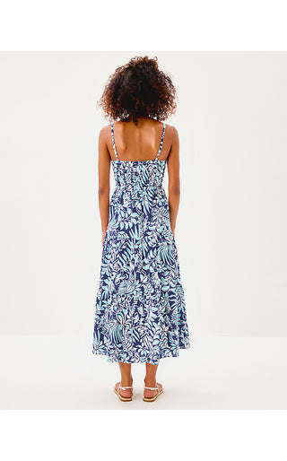 Zanna Cotton Midi Dress - Sapphire Pool Summer Shorelines