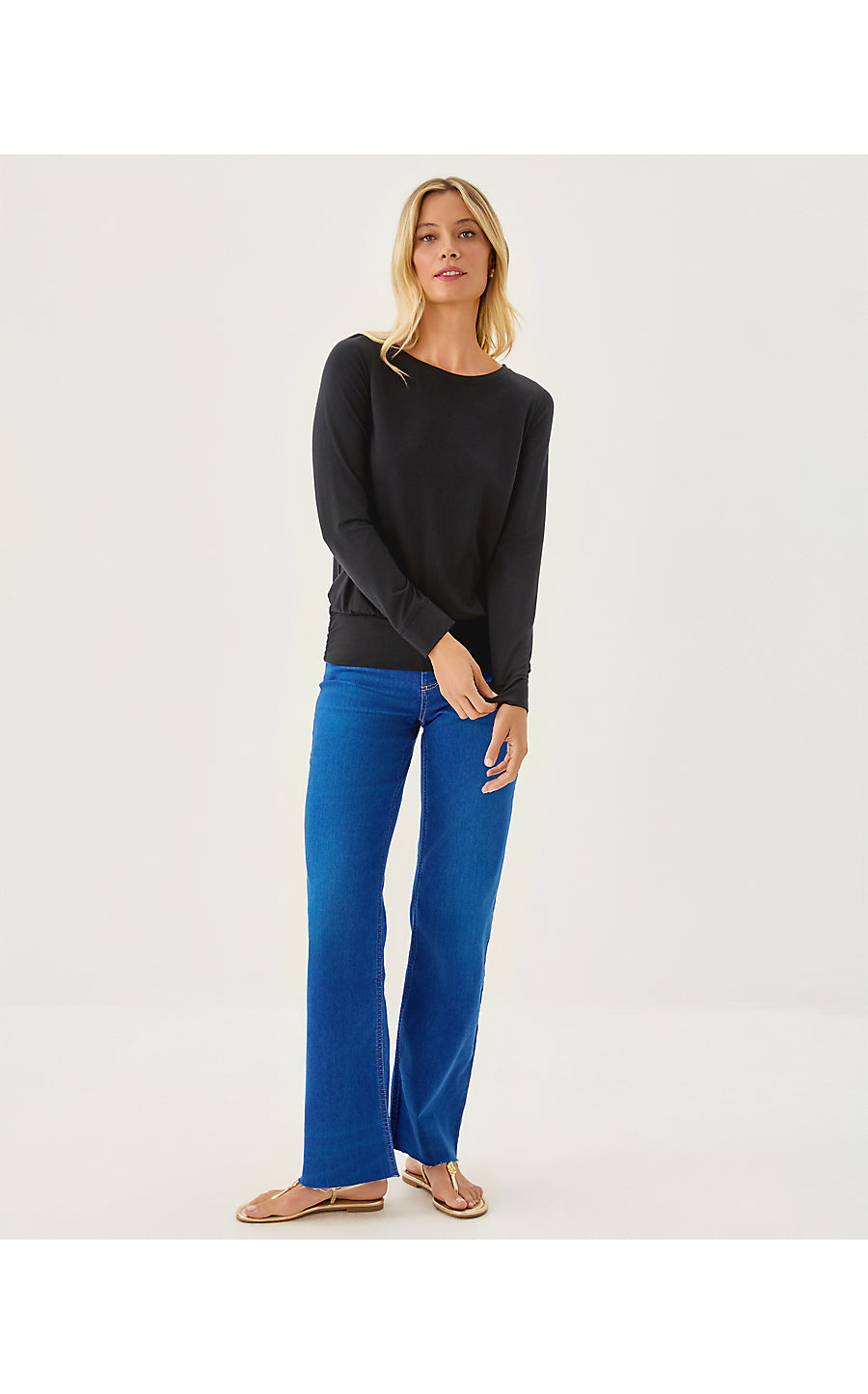• Straight fit, long sleeve, pullover tee.