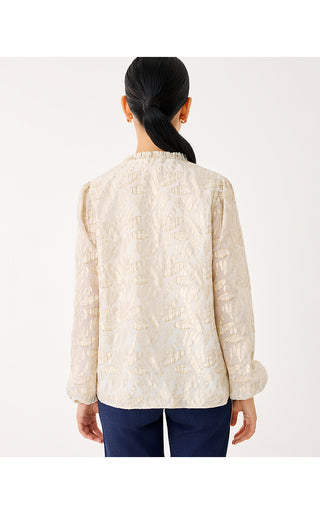Giana Long Sleeve Silk Top - Coconut Leafy Babe Metallic Silk Clip