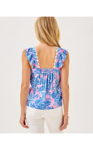 Kavalla Sleeveless Ruffle Top - Papaya X Resort White