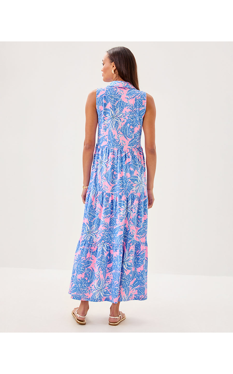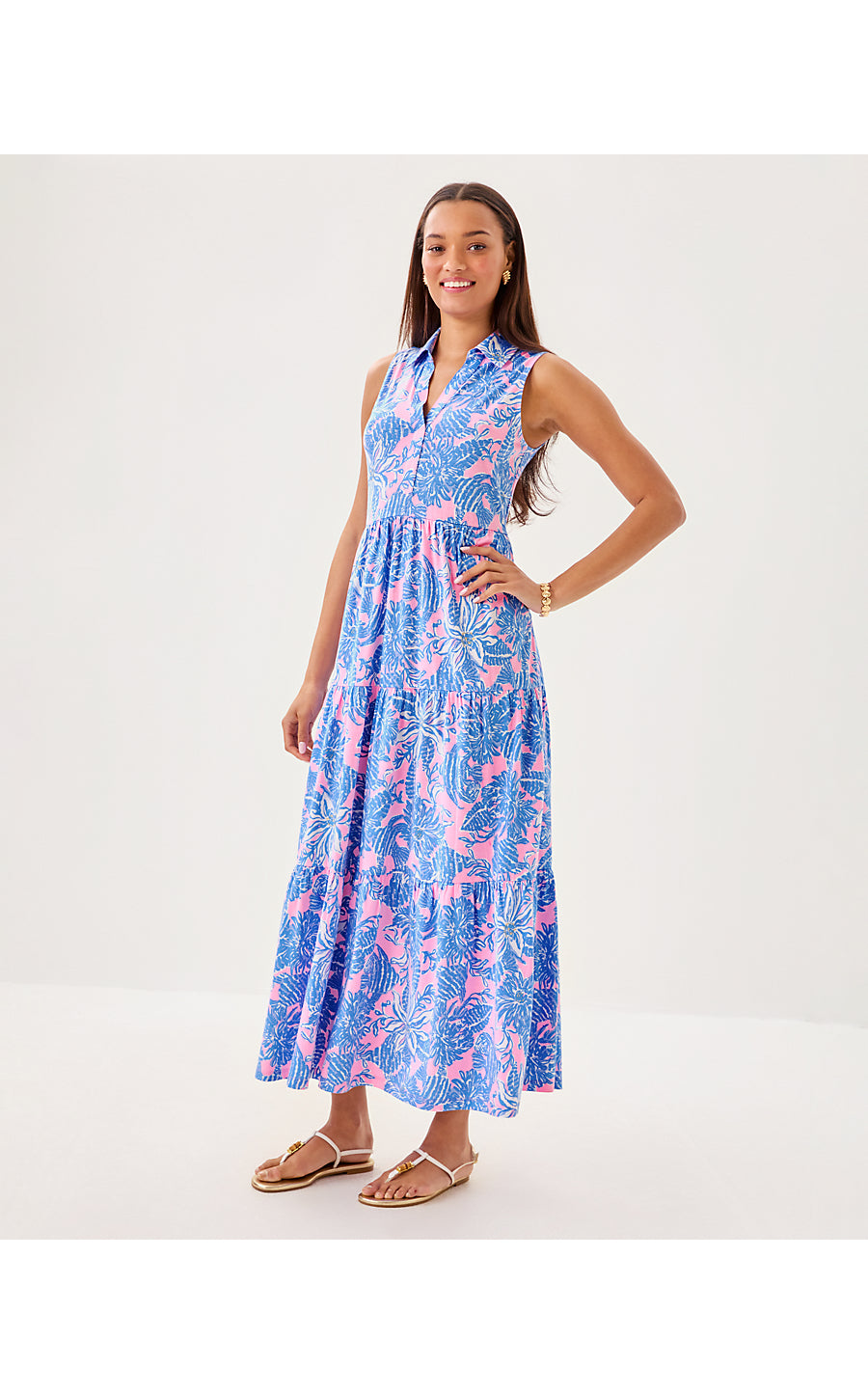 Riegan Maxi Dress- Swing fit, tiered maxi dress with a collar and half placket.