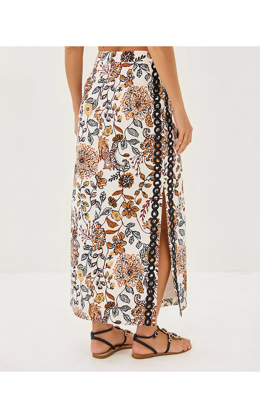 Sanders High Rise Maxi Skirt- High-rise, straight fit maxi skirt with a waistband, side slits, and lace trim.