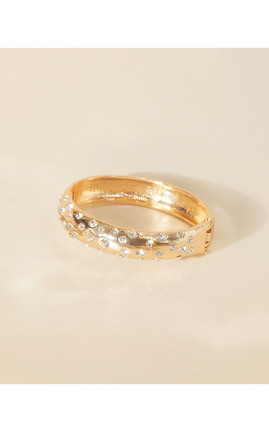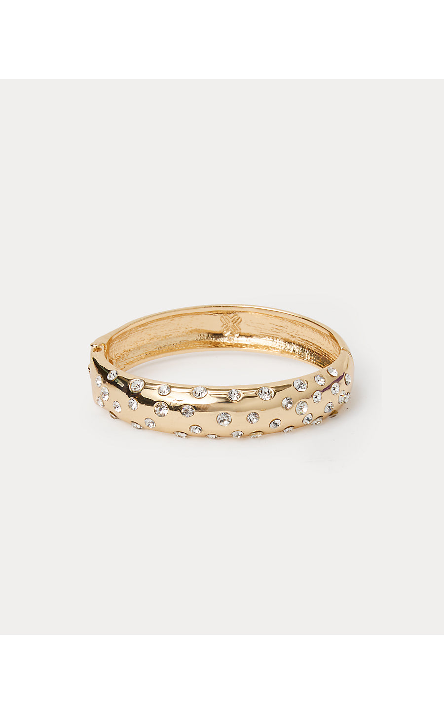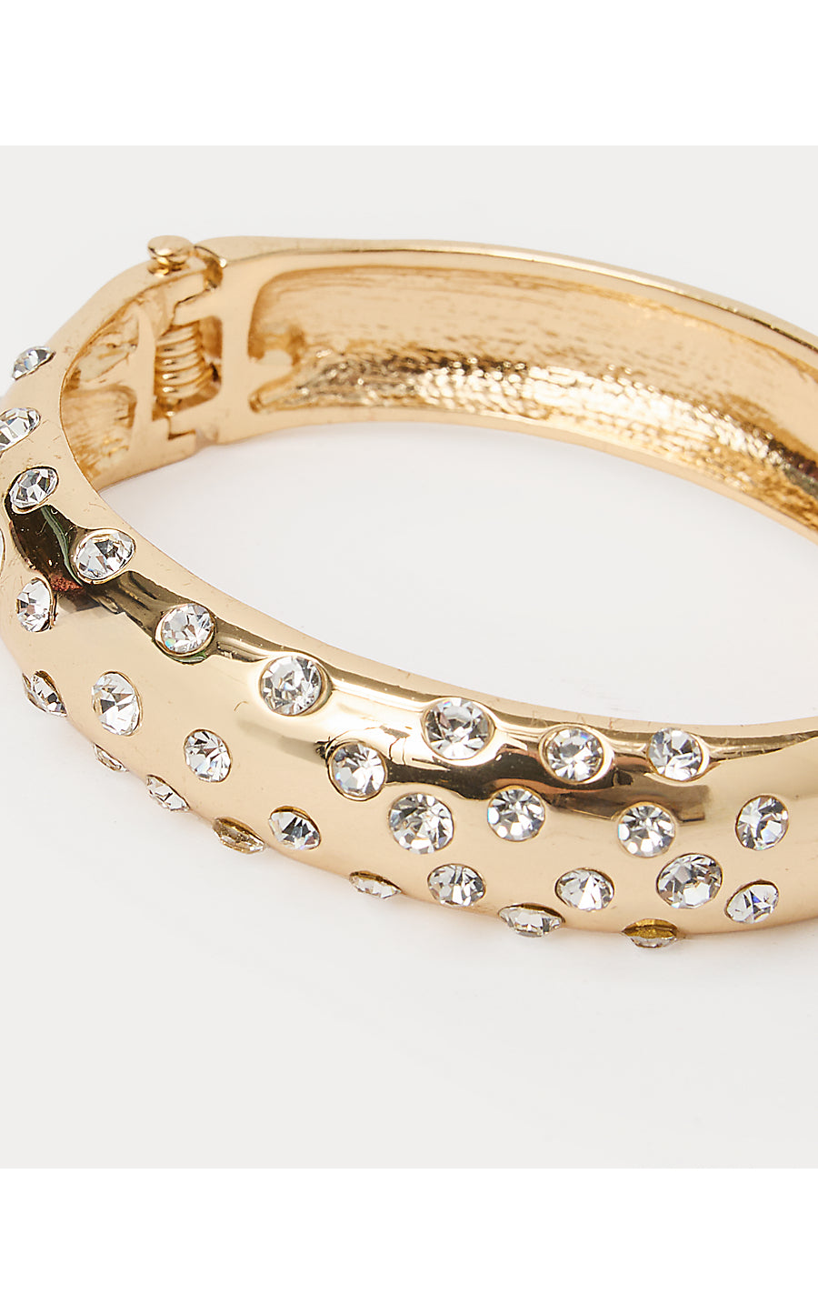All Dahled Up Bracelet- Gold hinge bangle bracelet with inset rhinestones.