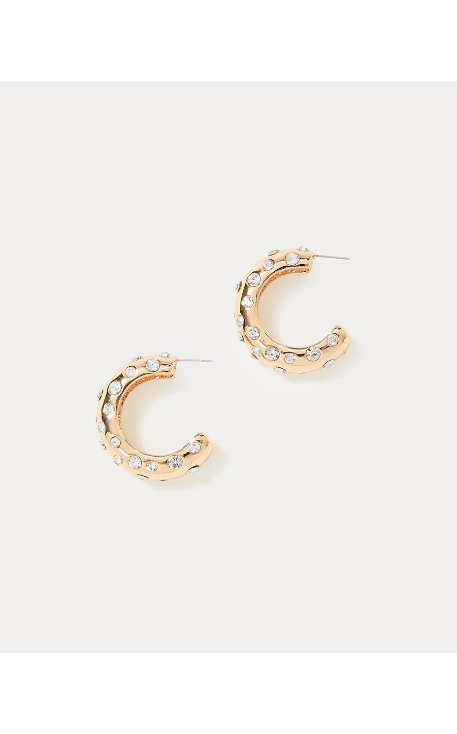 All Dahled Up Hoop Earrings- Gold chunky hoop earrings with inset rhinestones.