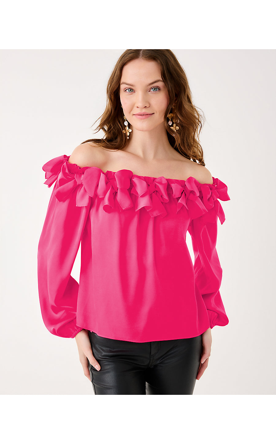 Analea Off-the-Shoulder Top- Relaxed fit, off-the-shoulder top with long sleeves and voluminous bow details.