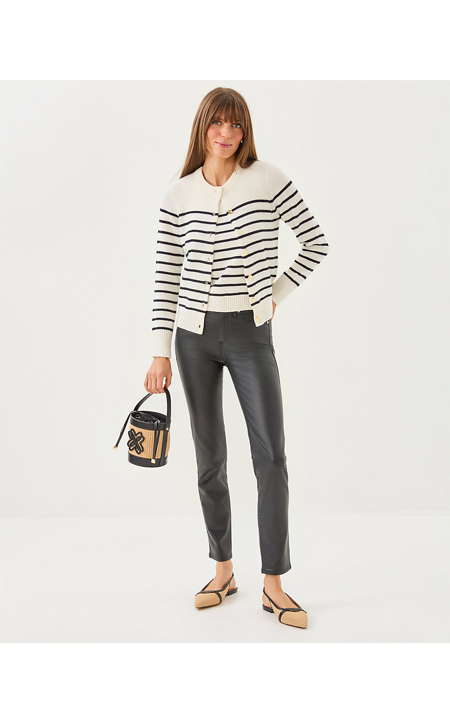 Fairley Stripe Sweater Set- Striped, crew neck cardigan with buttons and a matching crew neck shell.