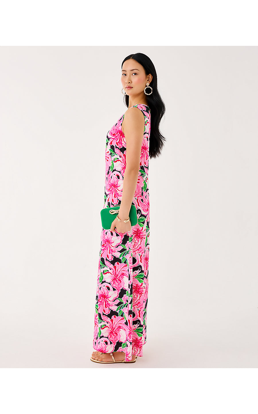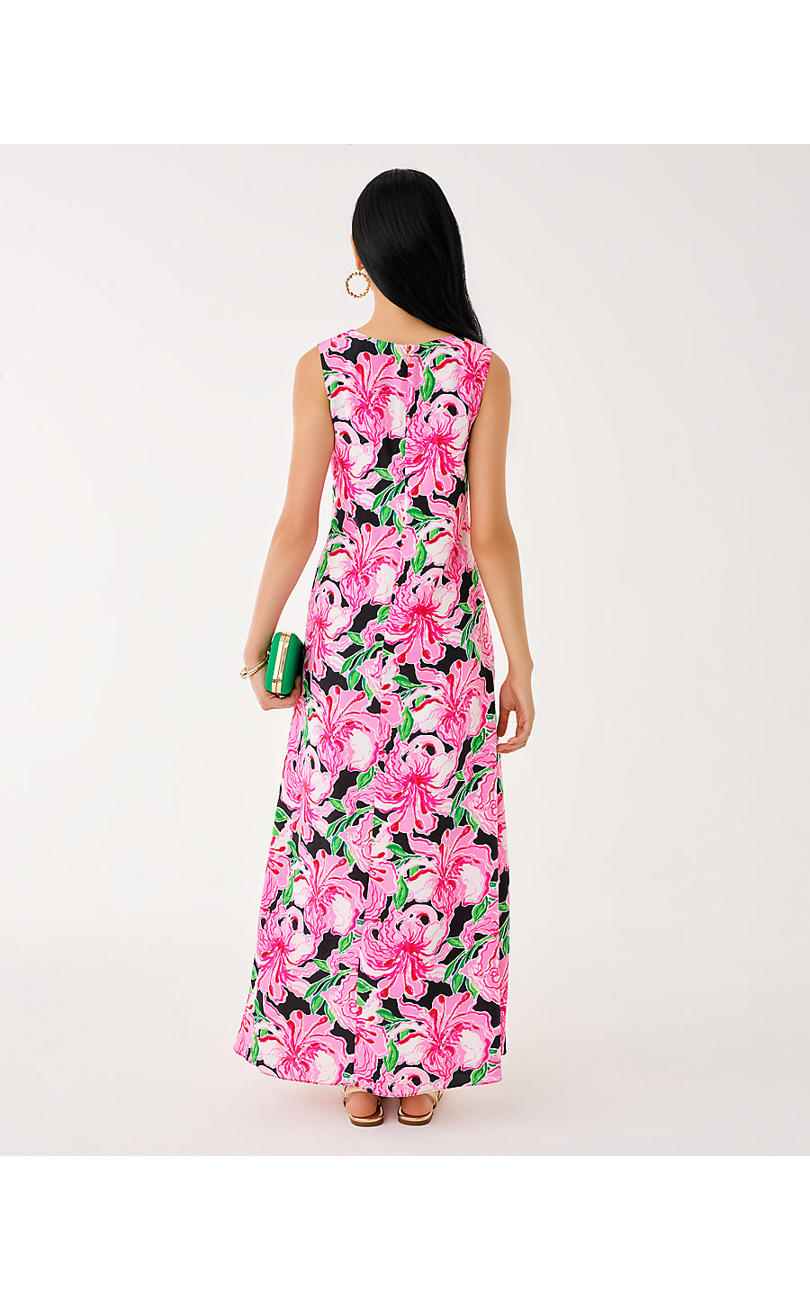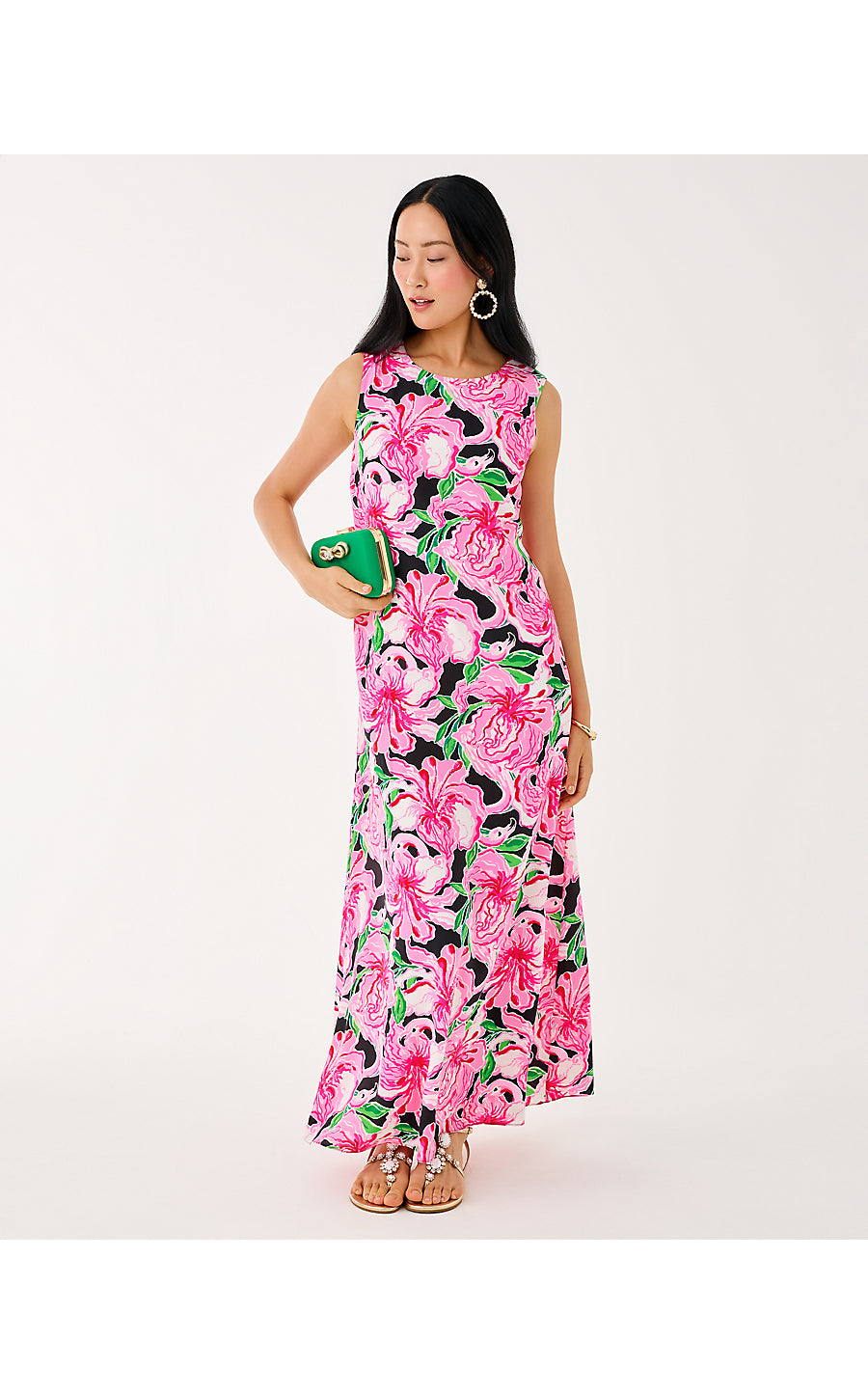 Iris Silk Maxi Dress- Swing fit maxi dress with a crew neckline.