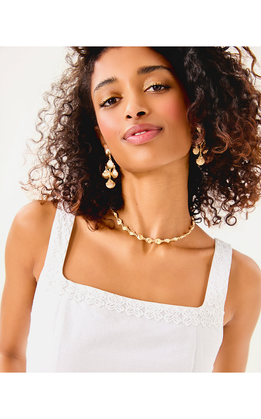 - Skirted bottom romper with a square neck, pockets, and top applied lace details.