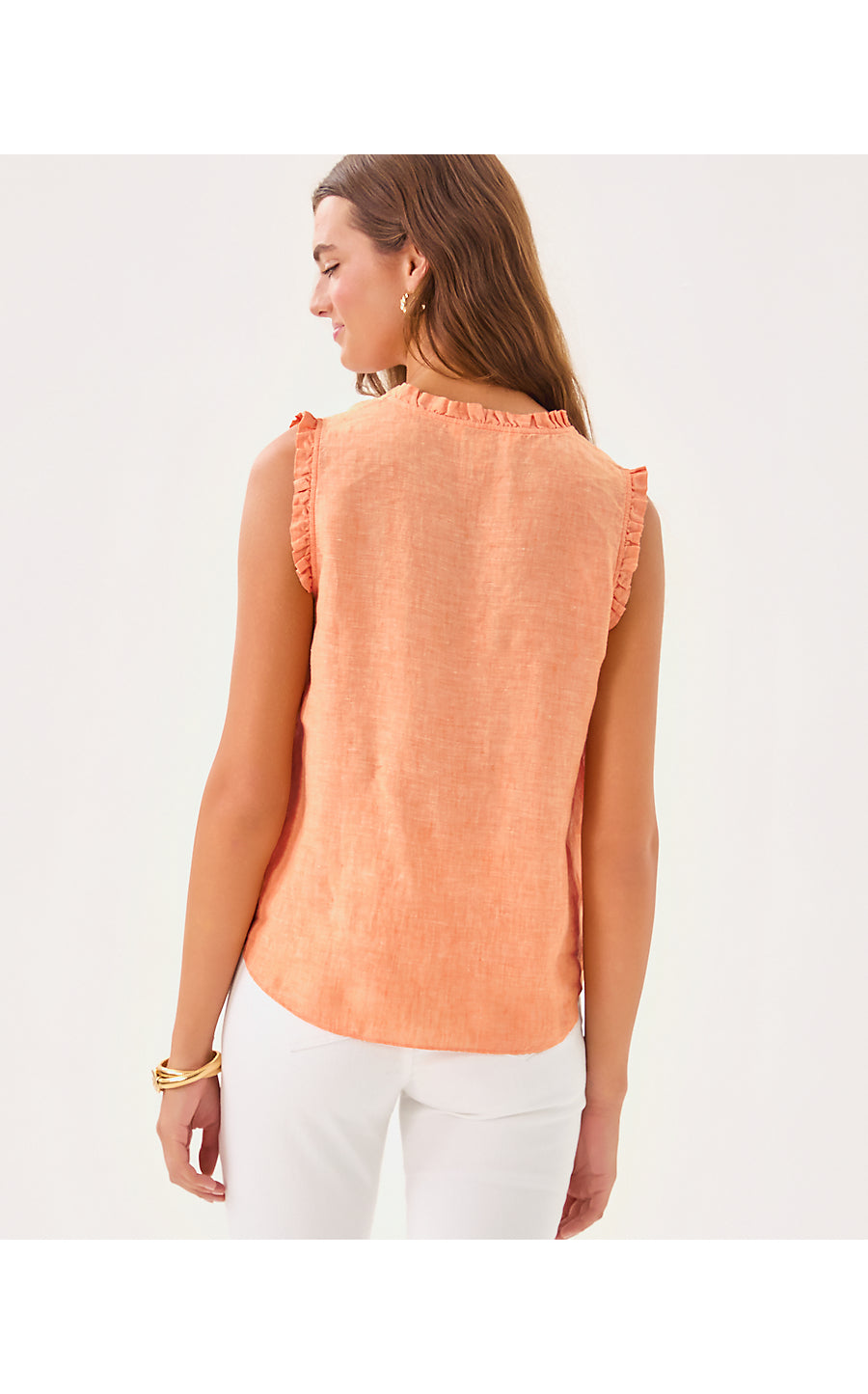 Kavalla Sleeveless Ruffle Top- Easy fit top with a notch neckline and ruffle details.
